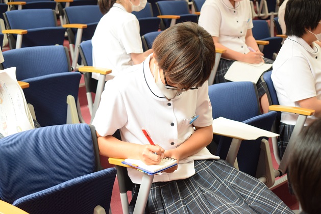 実際に利用者様に対して介助を行えないなどの課題もありますが、校内実習だからこそ出来る介助の方法や介助する意味を深く学ぶことができています。校内実習だけは補えない部分は、9日(水)には「志布志市社会福祉協議会」さんから、11日(金)には大崎町の障害者支援施設「愛生会」さんに来ていただき講演をして頂きました。実際の現場の生の声に、生徒は聞き入る様子でした。