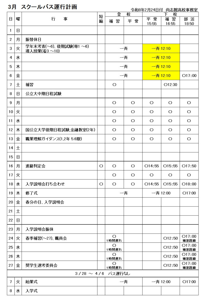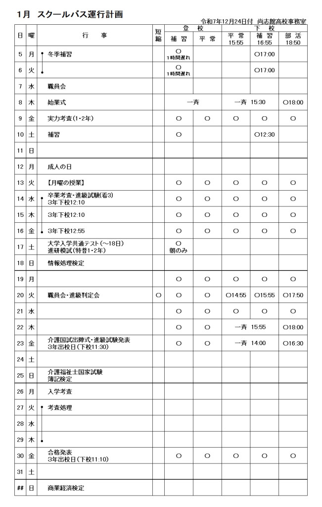 特進科・普通科の補習用の他、部活動生のためのバスも用意!遠方からでも安心して通学できるので、勉強に部活動に思う存分取り組むことができます!さらに!学校独自で運行しているため、公共交通機関よりも格安!生徒の状況に併せて、毎年、停車場を変更して運行しています!!